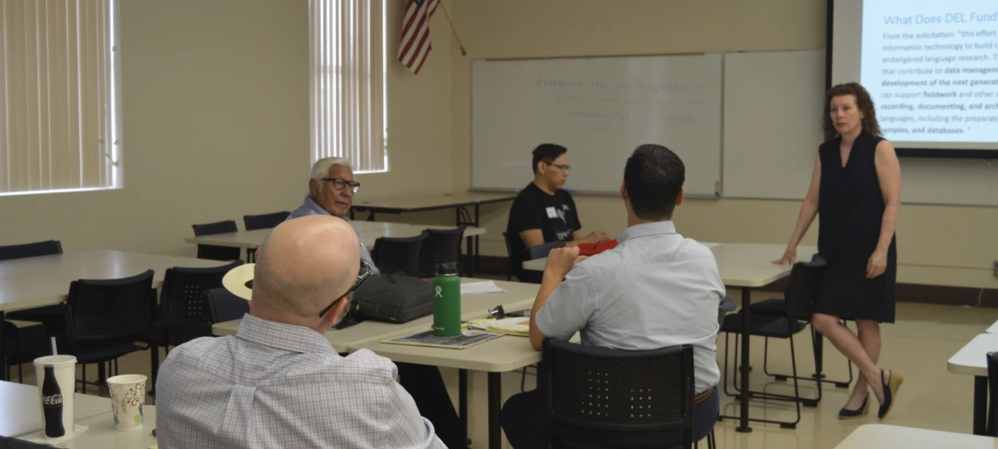 Colleen Fitzgerald, former program officer for the NSF DEL program, led AILDI’s recent grant writing workshop, held July 24-26, 2019. Fitzgerald walked participants through each step of the proposal submission process. Merit review criteria was particularly emphasized and participants were able to draft statements that spoke to “intellectual merit” and “broader impacts”. Participants were selected for the workshop based on proposal ideas that were submitted as part of the workshop application process. In addition to working on proposal drafts, participants discussed larger issues related to language documentation in Native communities. These included such topics as, access to culturally sensitive information and working with linguists.